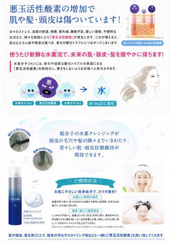 低分子の水素クレンジングが頭皮の毛穴や髪の隅々までいきわたり、若々しい肌・頭皮状態維持が期待できます。