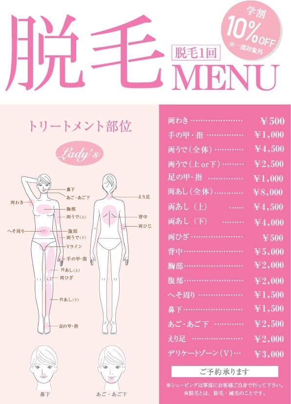 下が美容室なので、カラーの待ち時間等に、ワキやうなじや、腕、鼻下等の脱毛が